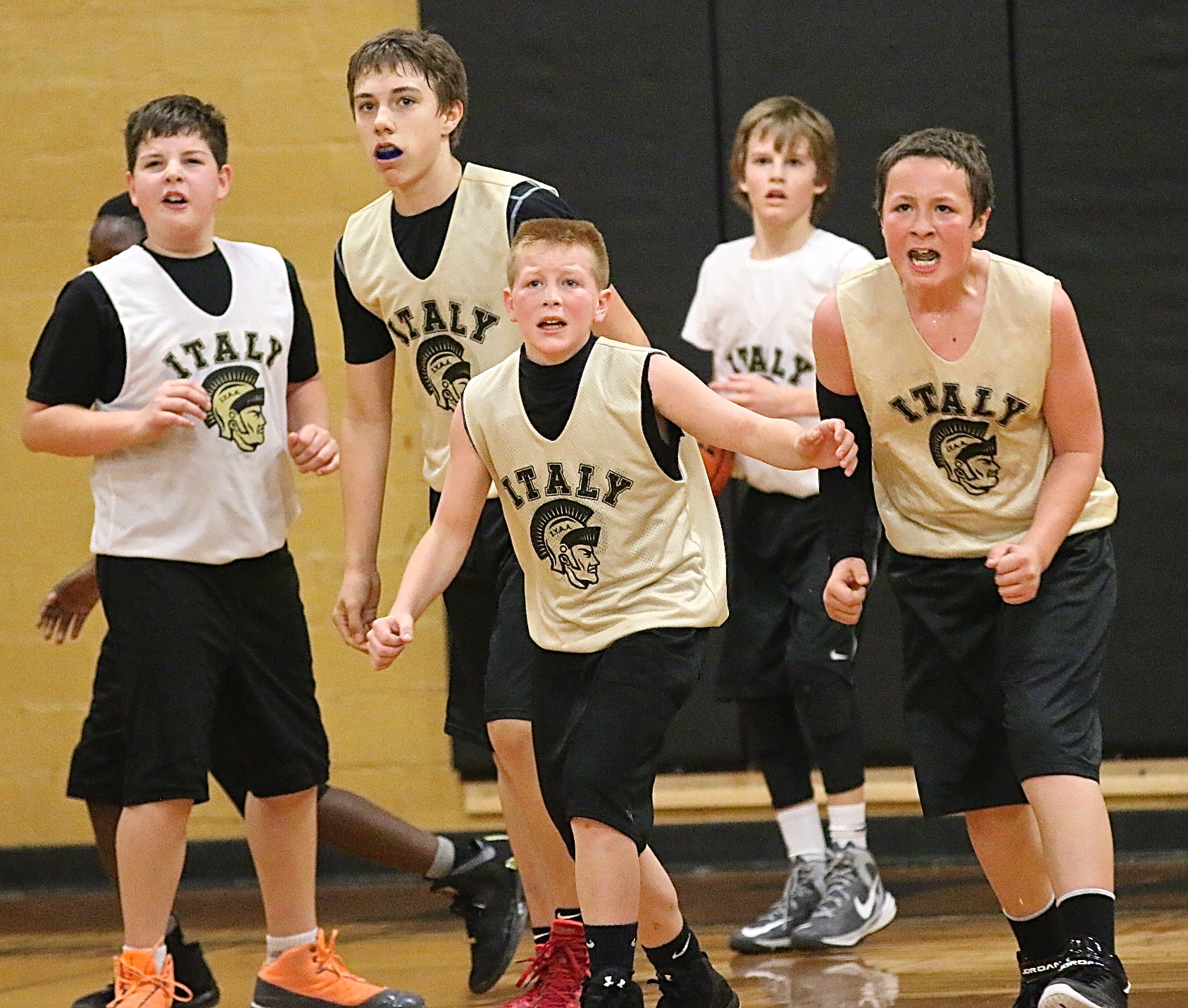 Everybody checks the clock after Italy Gold’s Grant Hamby(9) scored to tie the game 26-26. Teammates Ty Cash(10) and Jayden Saxon(8) celebrate their team’s comeback effort that tied the game 26-26. (Barry Byers)