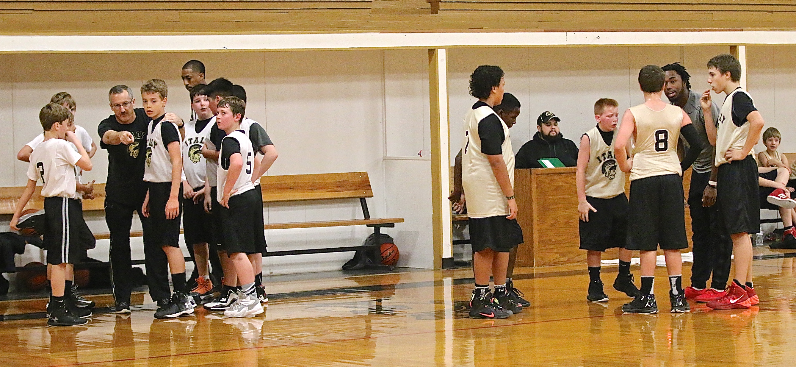 The IYAA basketball season goes into overtime « previous story album next » Both head coaches Kyle Holley (Italy White) and Jasenio Anderson (Italy Gold) direct their teams in crunch time during a timeout. (Barry Byers) Download original photo