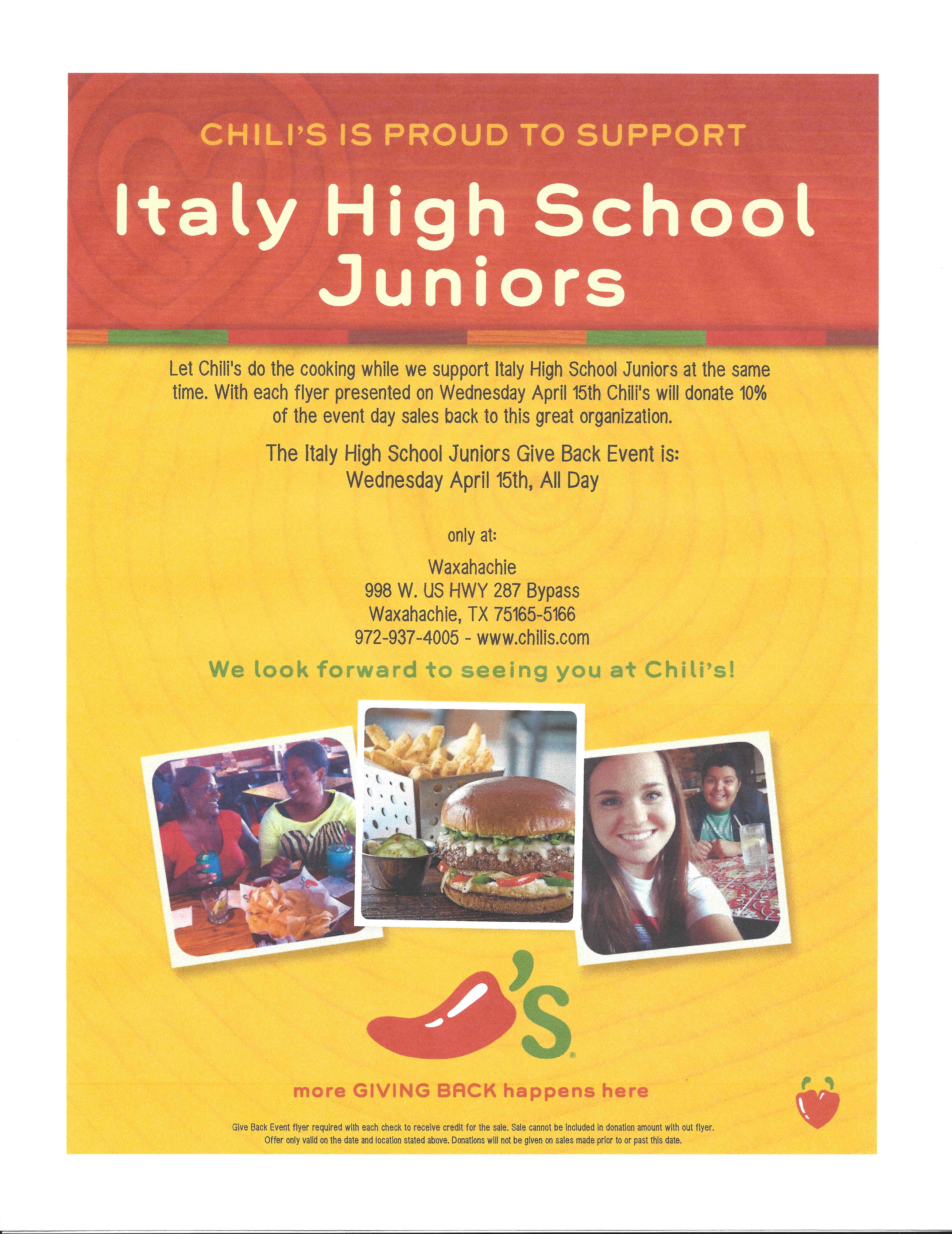 Support the Junior Class night at Chili’s