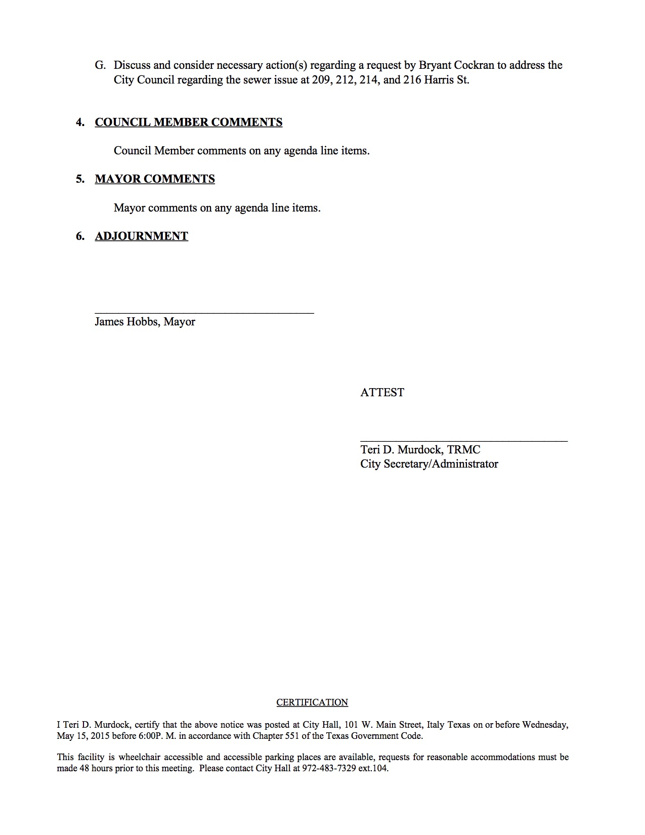 Agenda: Italy City Council Meeting – Monday, May 18, 2015 « previous story album next » Agenda – page 2 Download original photo