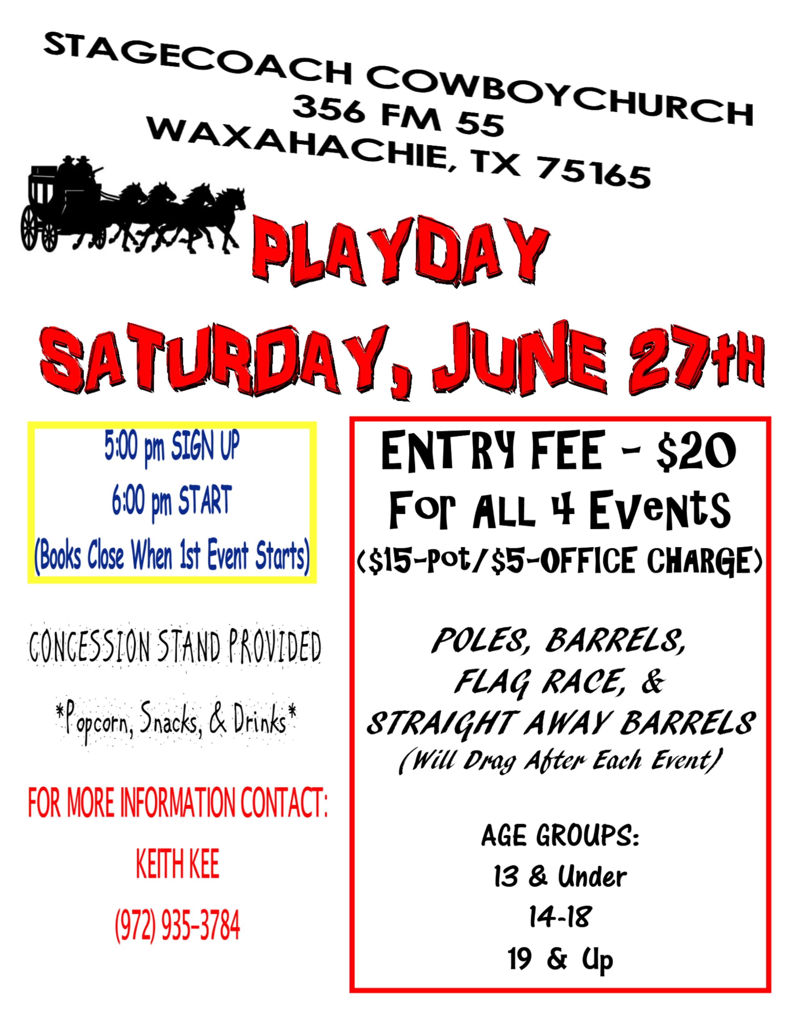 Playday planned at Stagecoach Cowboy Church