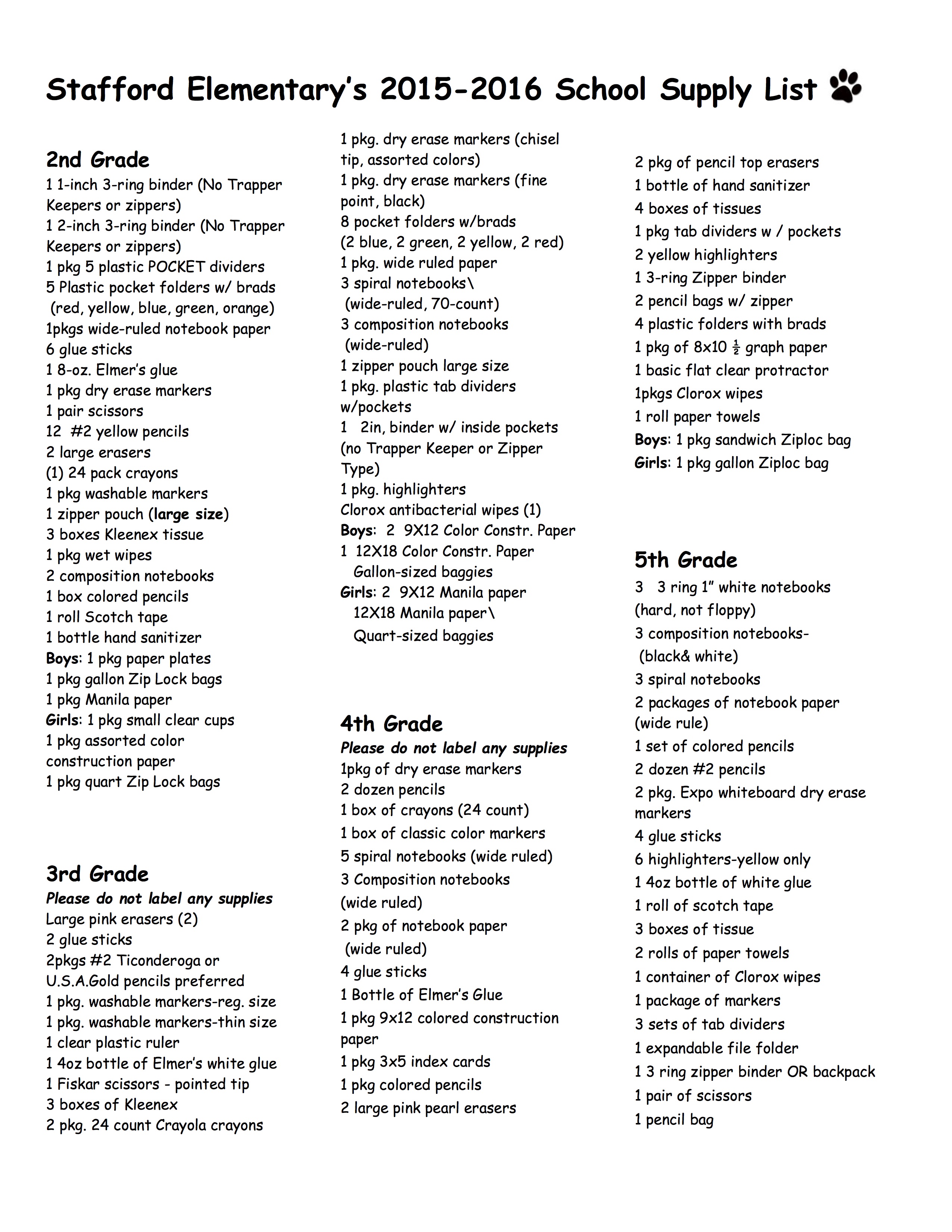 Stafford Elementary releases 2015-2016 school supply lists « previous story album next » Download original photo