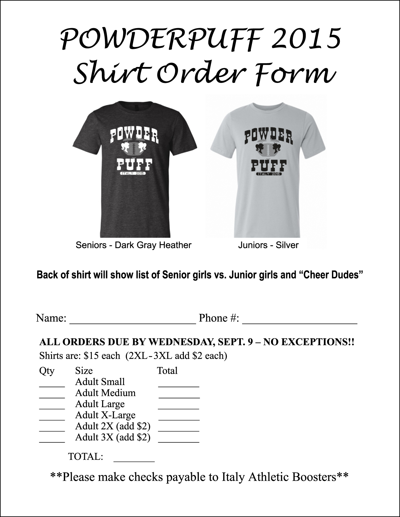 Italy Powderpuff game between Senior and Junior girls on September 17, at 7:00pm « previous story album next » Click to enlarge image then select ‘Fit To Page’ before printing (Submitted photo) Download original photo