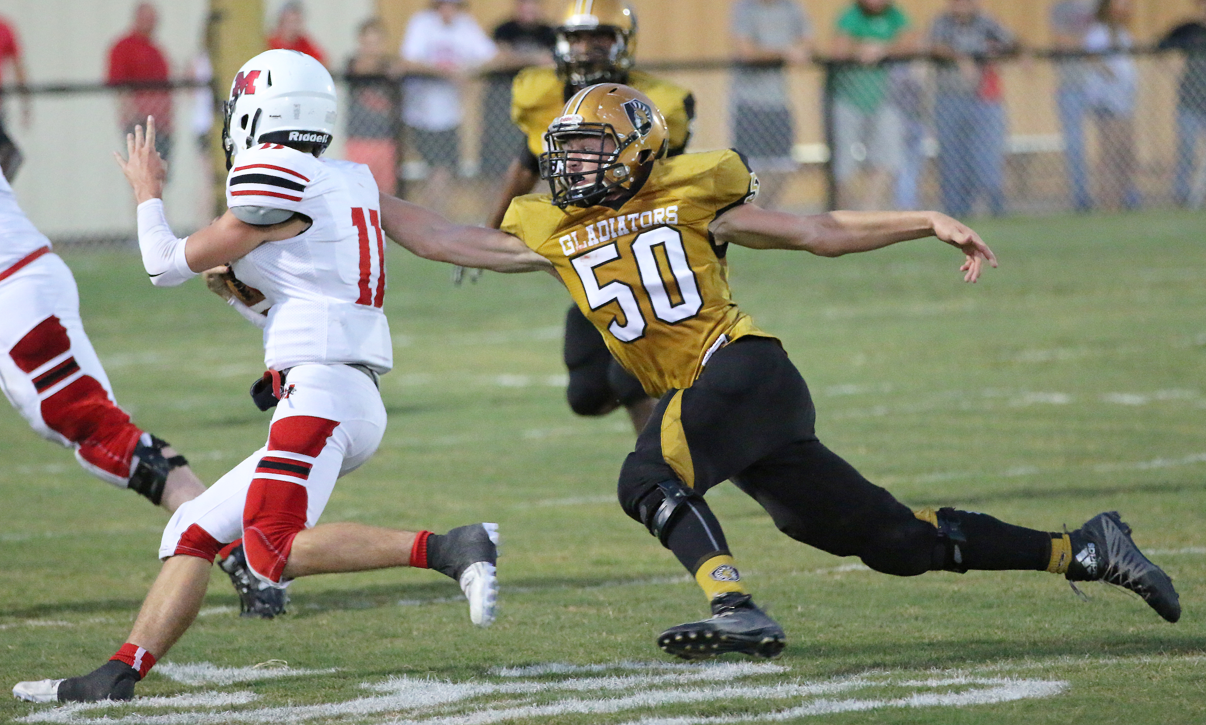 Italy Gladiators show promise under new leadership of AD/HFC David Weaver « previous story album next » Gladiator and sophomore Defensive tackle Clay Riddle(50) helps bring down a Maypearl running back. (Barry Byers) Download original photo
