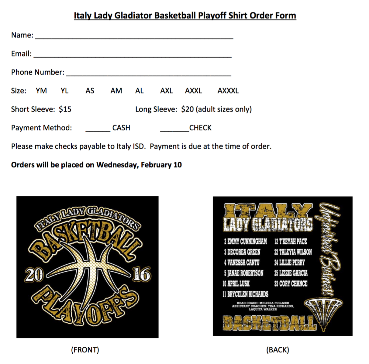 Lady Gladiator Basketball play-off shirts available by pre-order « previous story album next » Download original photo