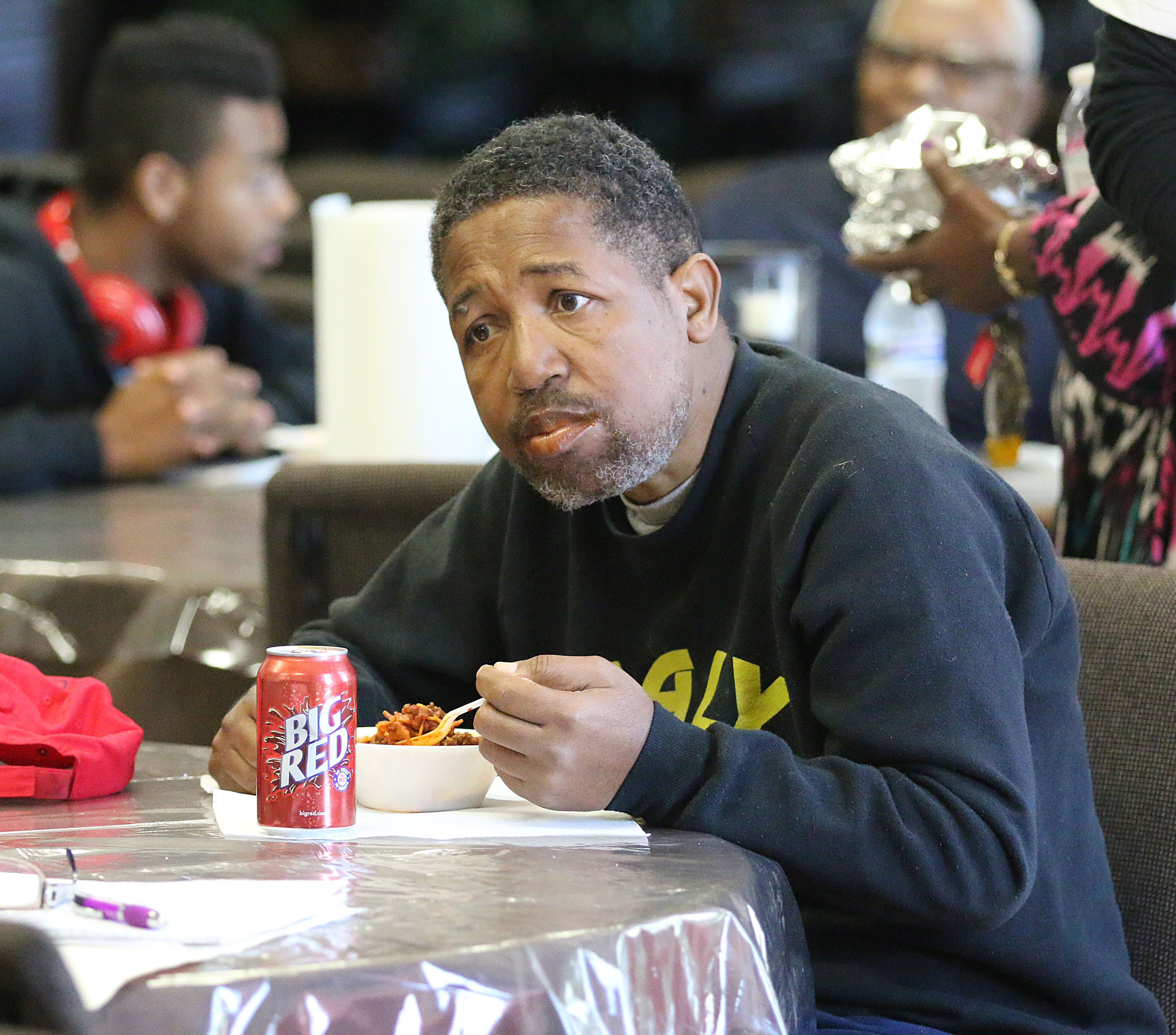 Marilyn Kelly named winner of Chili Cookoff hosted by Union Women at Work « previous story album next » Dean Reese enjoys his first bowl of chili while studying his next pot of chili to taste. (Barry Byers) Download original photo