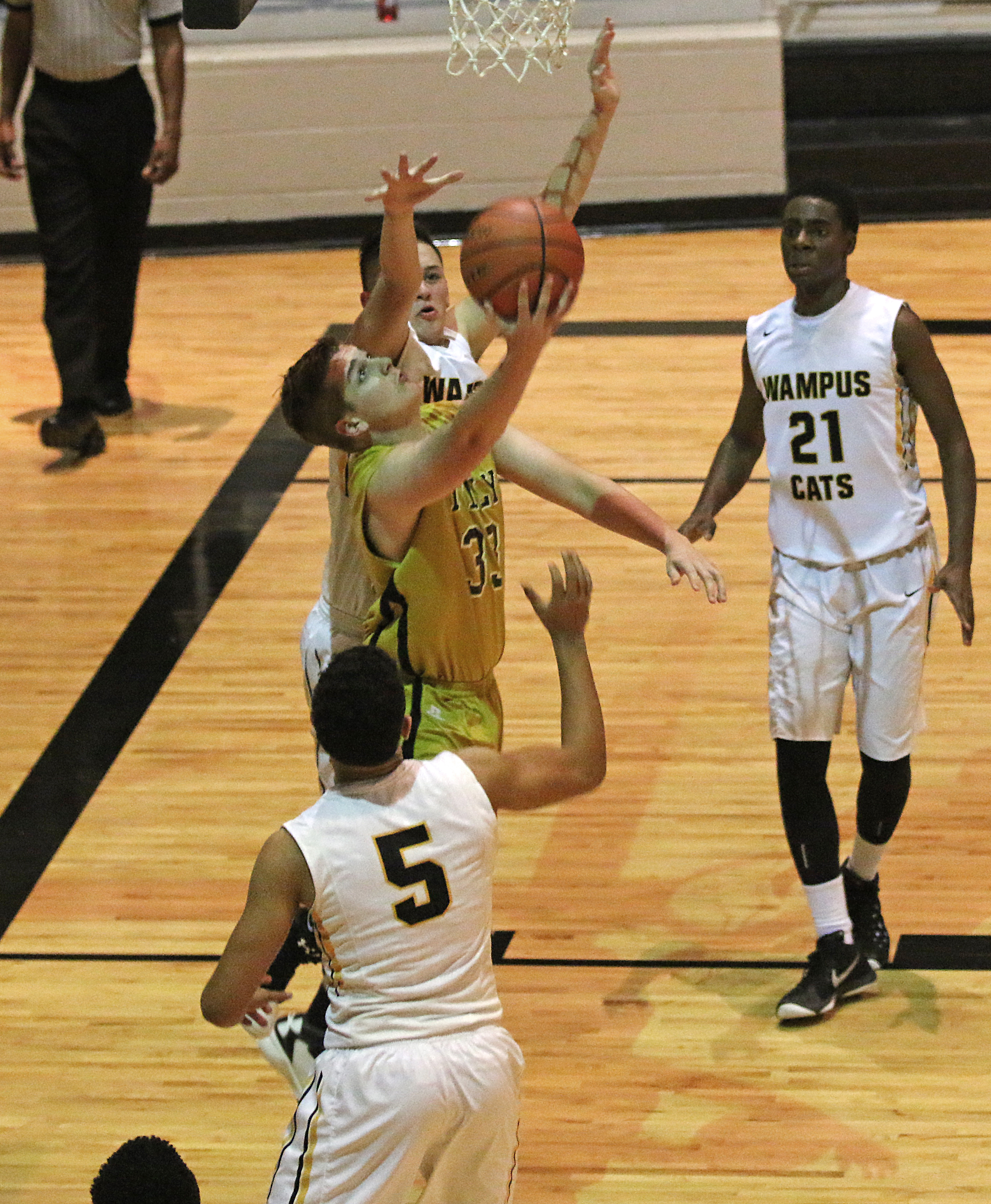 Gladiators seal the district deal with a 60-45 win over Itasca. PLAYOFFS!!! « previous story album next » A little razzle-dazzle from the rookie, James Walton(33), as he uses a reverse shot to score against the Wampus Cats. (Barry Byers) Download original photo