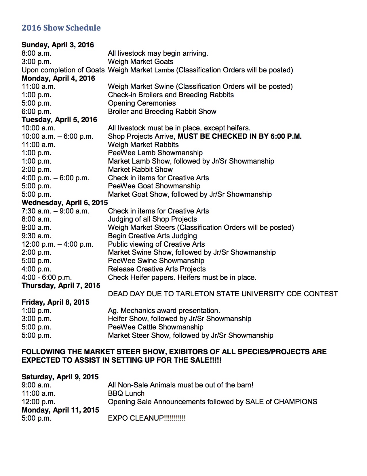 27th Annual Ellis County Youth Expo — April 4 thru 9