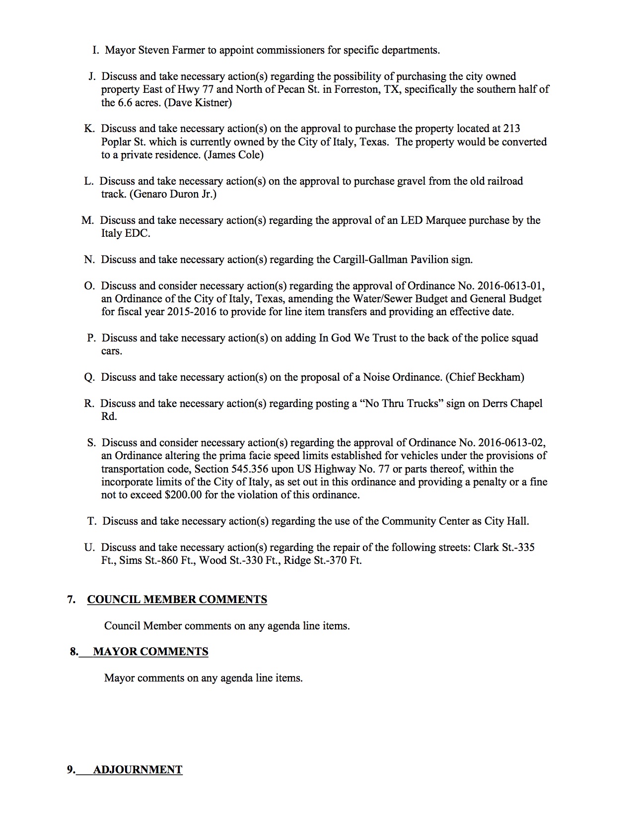 Agenda: Italy City Council Meeting — Monday, June 13, 2016 « previous story album next » Agenda – page 2 Download original photo