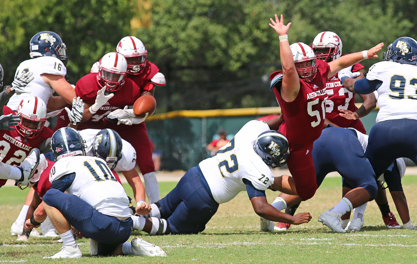 Support Zain Byers and his Austin College teammates Saturday in Waxahachie @ 6pm « previous story album next » Austin College junior #50 Zain Byers attempts to block a field goal attempt from Howard Payne. (Barry Byers) Download original photo