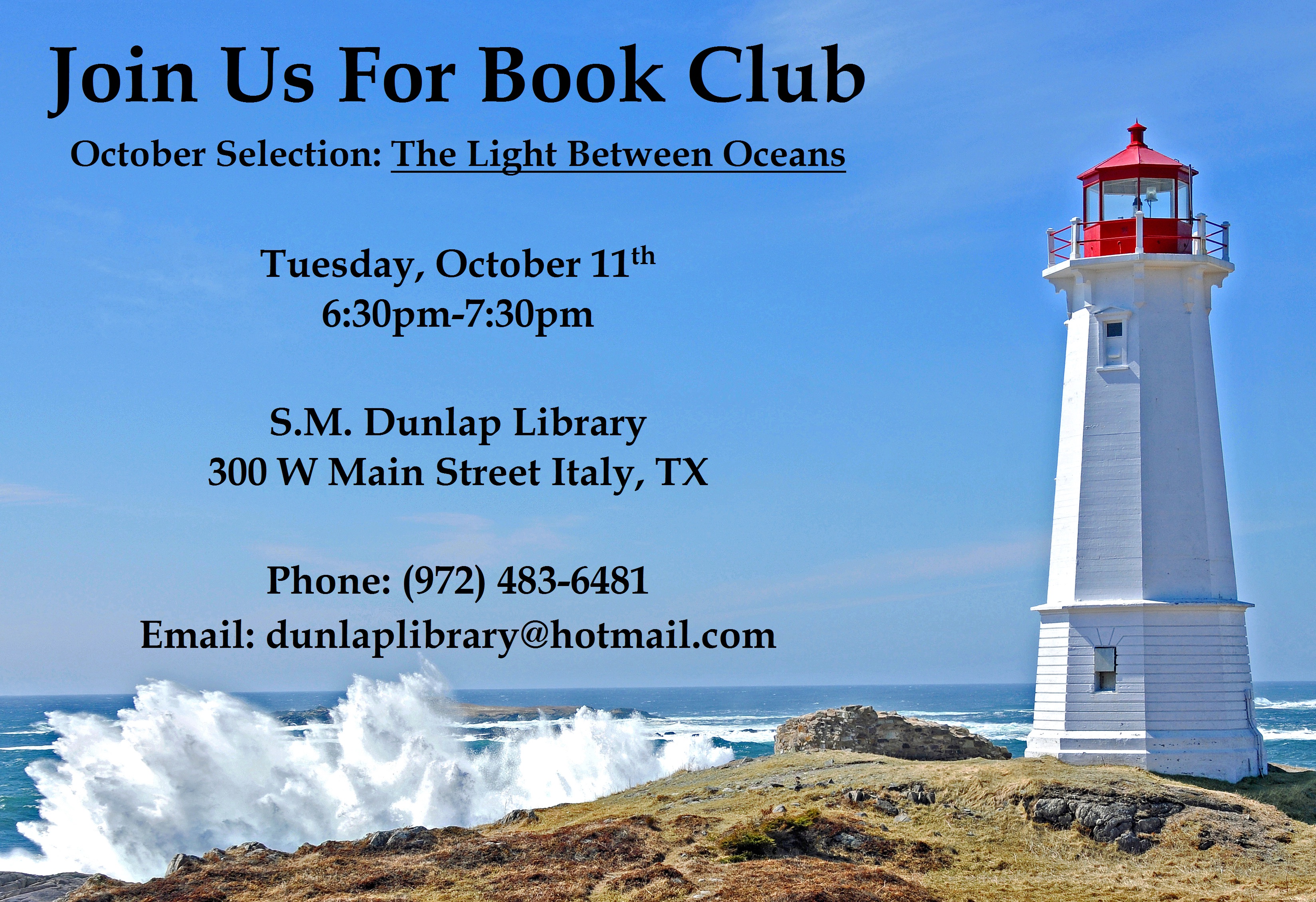 S.M. Dunlap Library Book Club invitation: October 11, 2016 « previous story album next » Download original photo