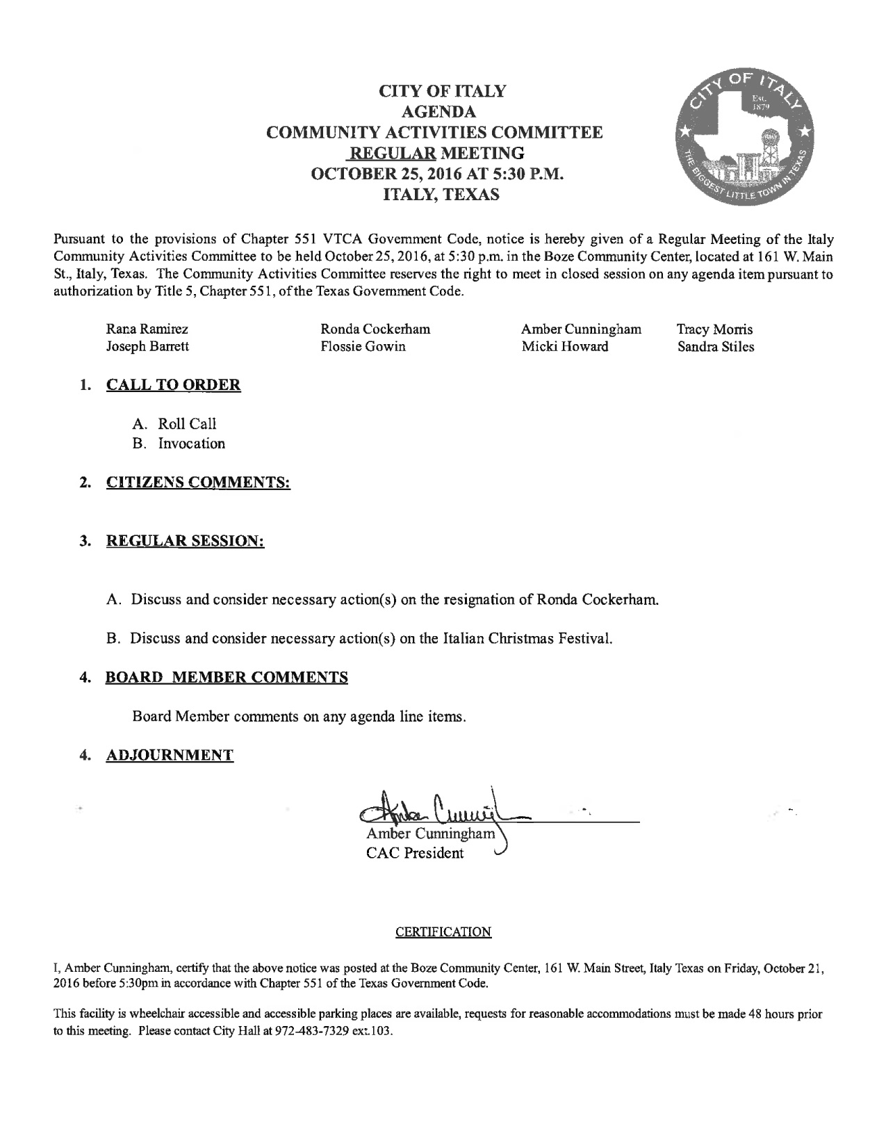 Agenda: Italy Community Activities Committee — Tuesday, October 25, 2016 « previous story album next » Download original photo