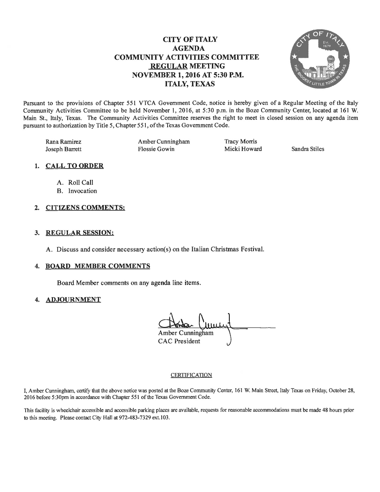 Agenda: Italy Community Activities Committee — Tuesday, November 1, 2016 « previous story album next » Download original photo