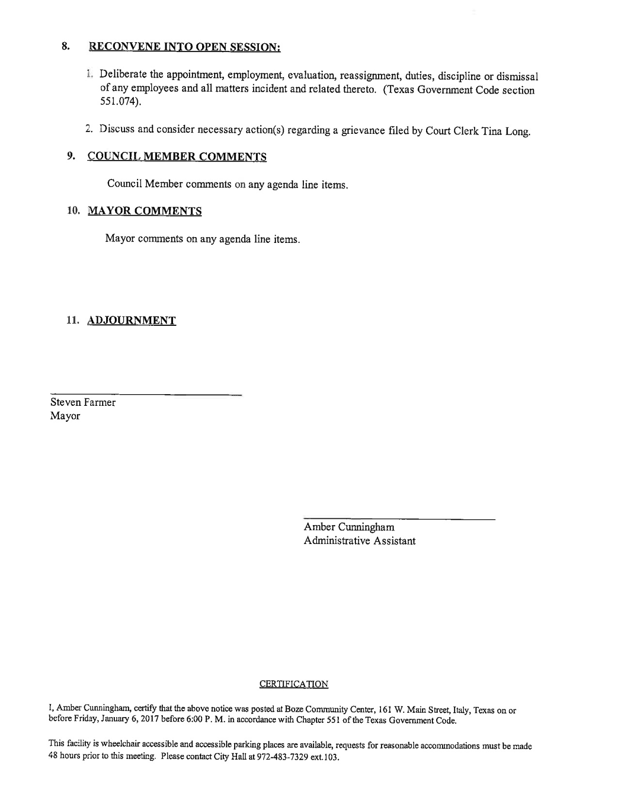 Agenda: Italy City Council Public Hearing Meeting – Monday, January 9, 2017 « previous story album next » Download original photo