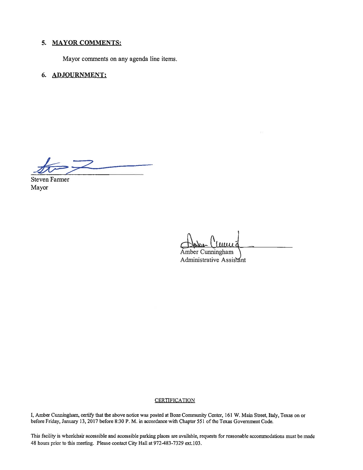 Agenda: Italy City Council Called Meeting – Thursday, January 19, 2017 « previous story album next » Download original photo
