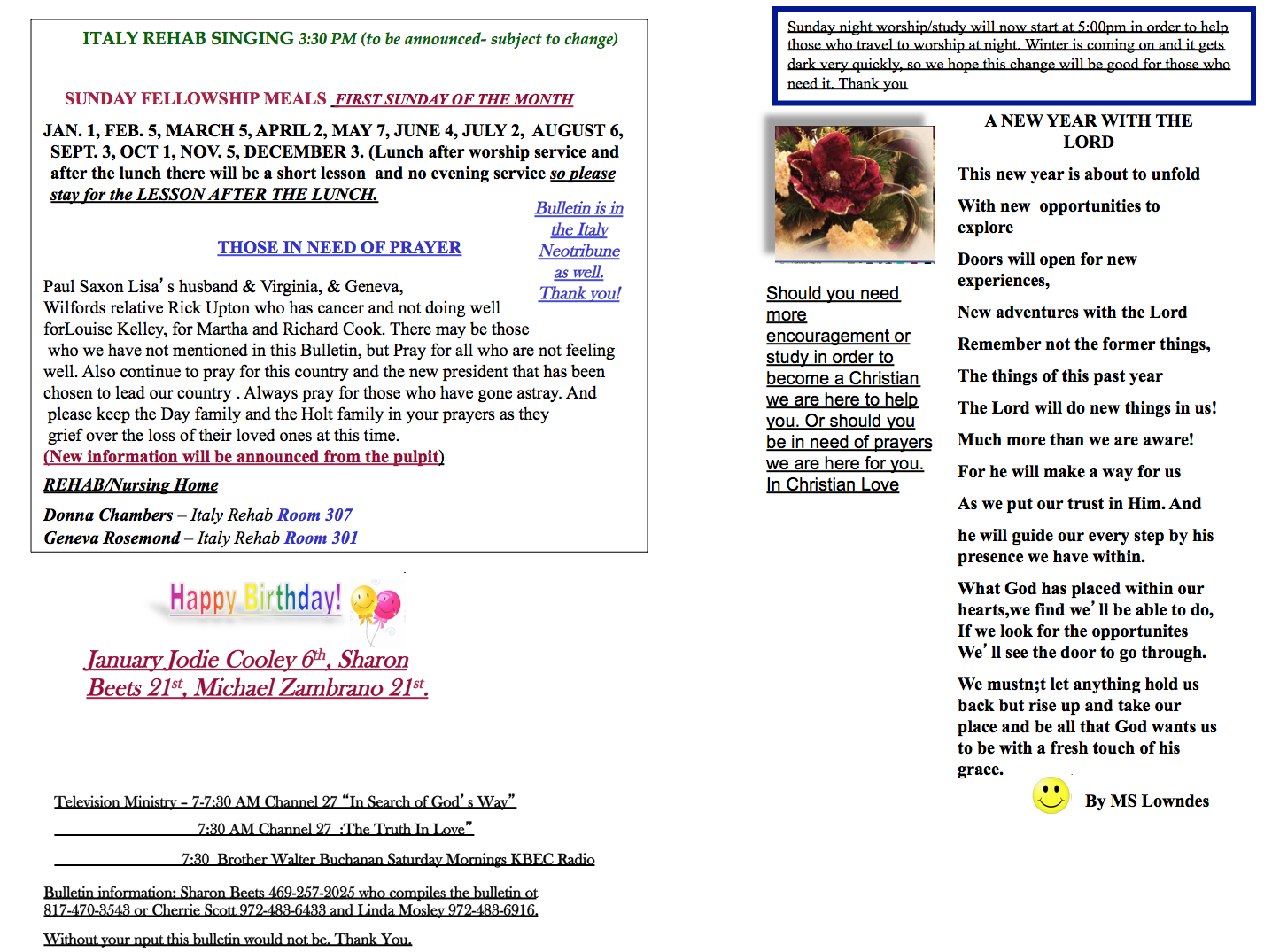 Italy Church of Christ Weekly Bulletin — January 15, 2017