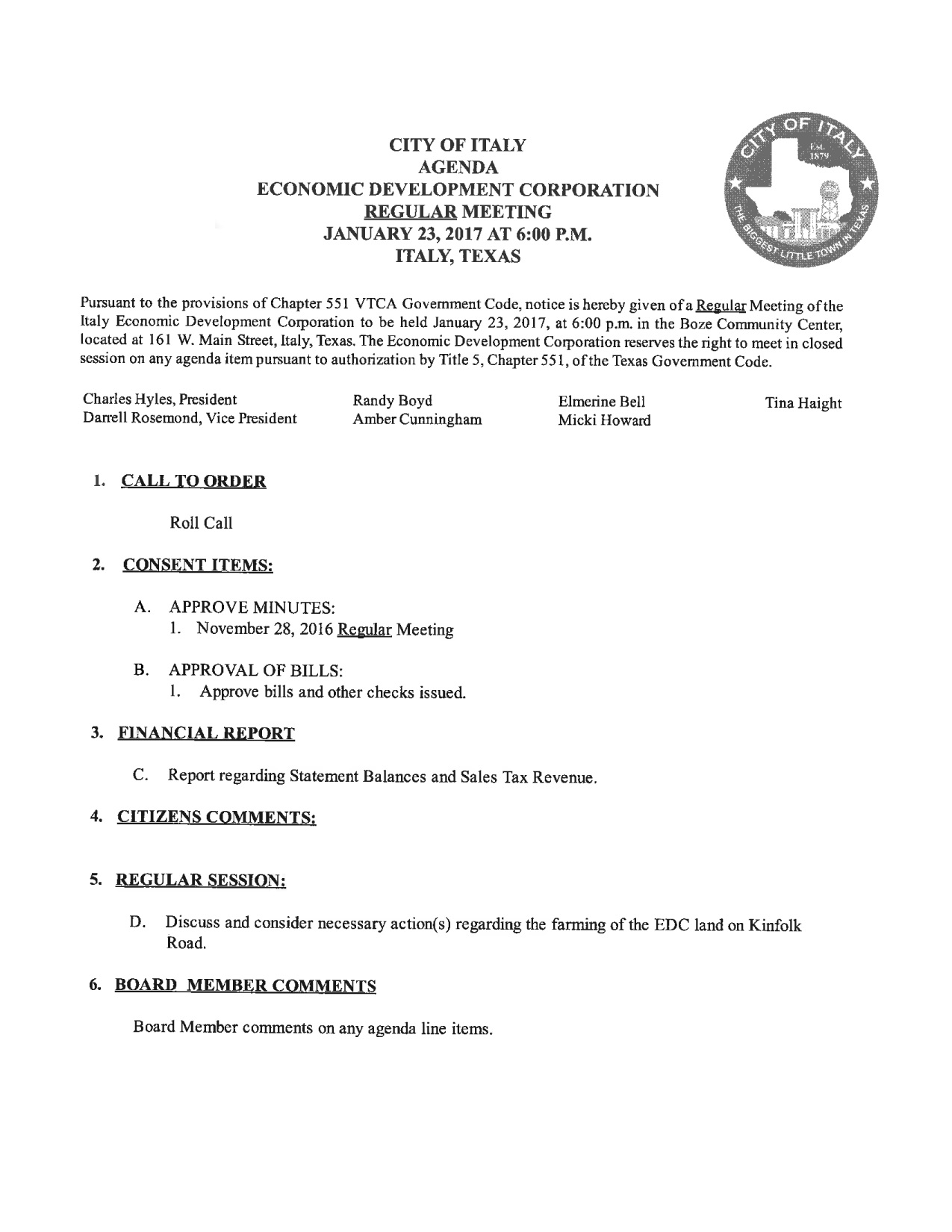 Agenda: Italy Economic Development Corporation Meeting — Mon., January 23, 2017 « previous story album next » Download original photo
