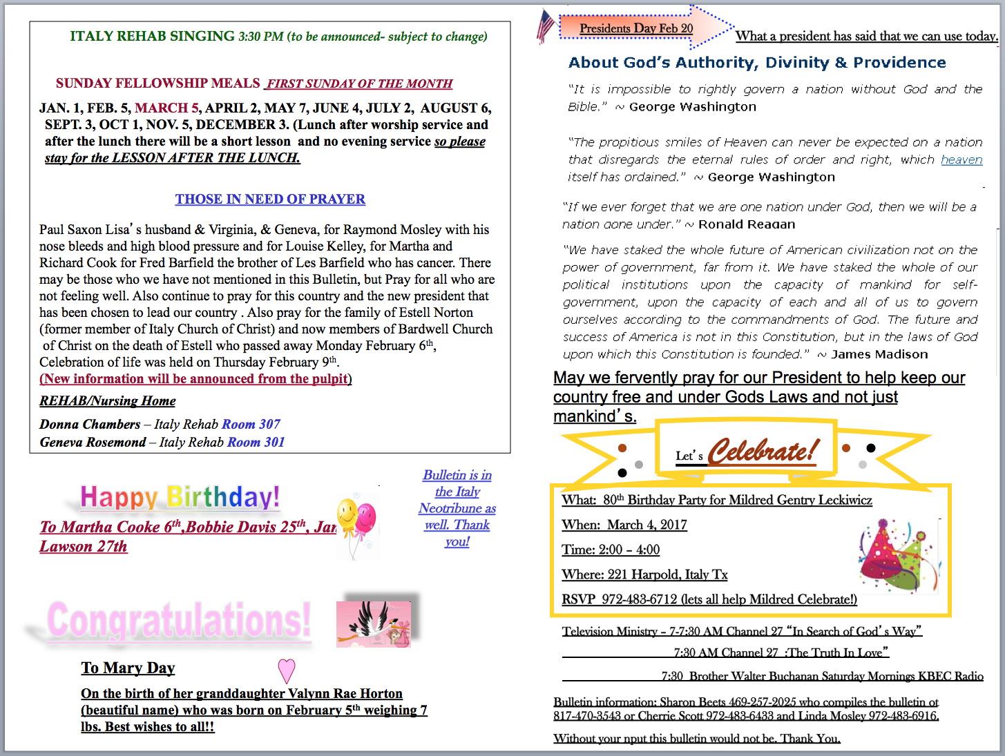 Italy Church of Christ Weekly Bulletin — January 29 and February 19, 2017 « previous story album next » February 19, 2017 – page 2 Download original photo