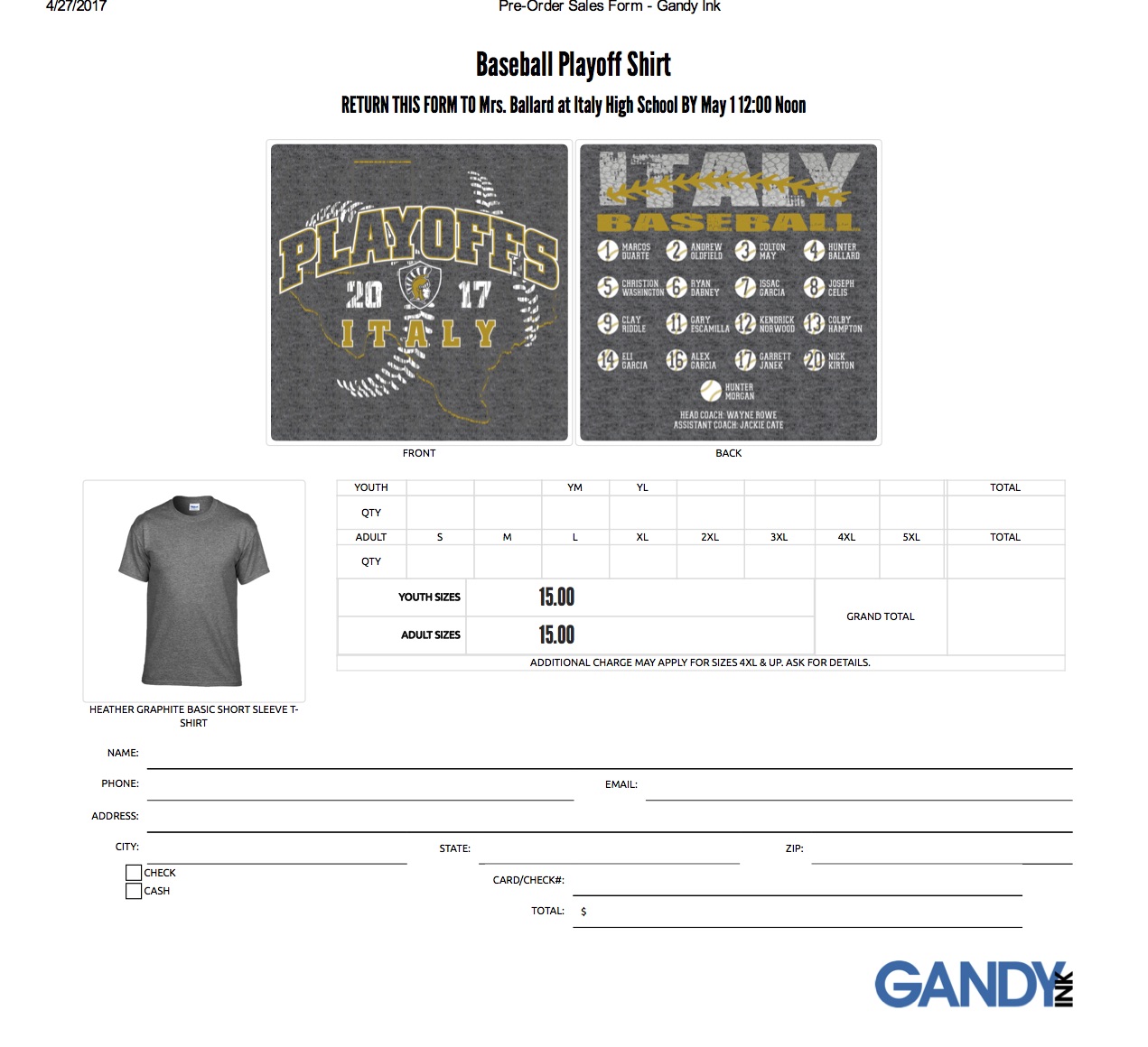 Italy Baseball playoff shirts on sale now thru May 1st « previous story album next » Download original photo