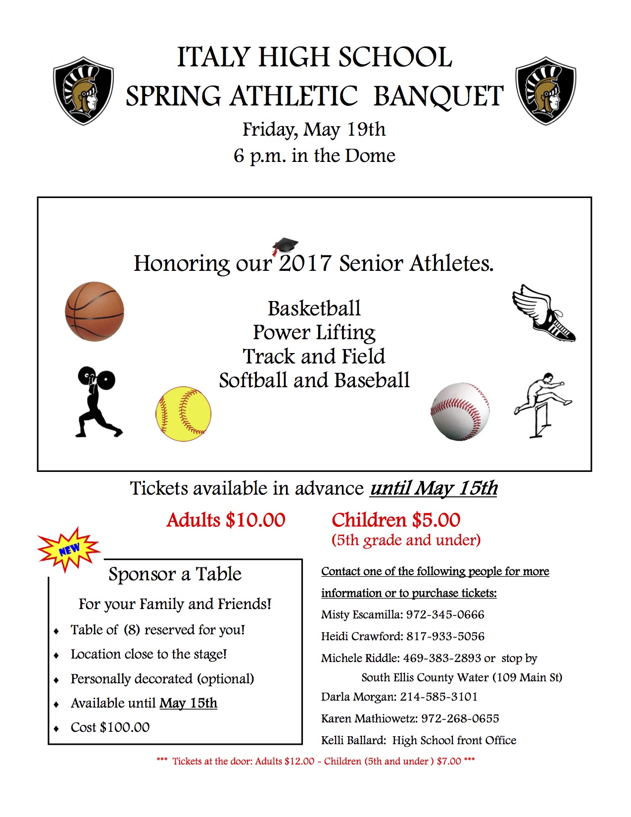 Italy High School Spring Sports Banquet information and ticket sales flyer « previous story album next » Download original photo