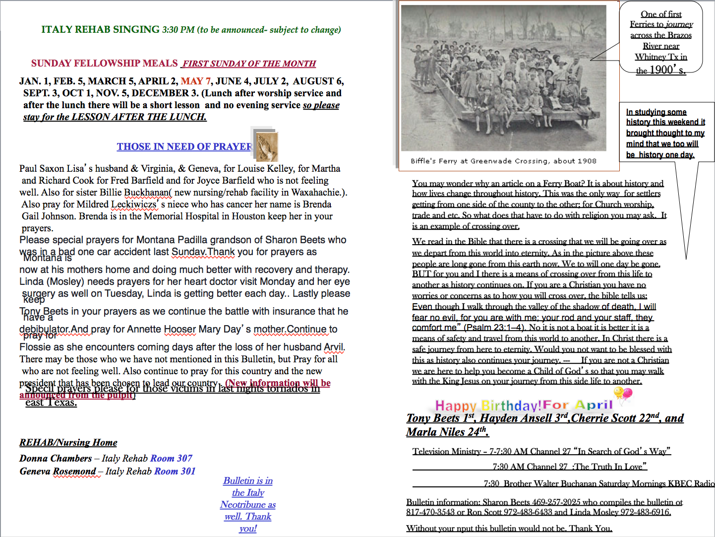 Italy Church of Christ Weekly Bulletin — April 30, 2017 « previous story album next » Download original photo