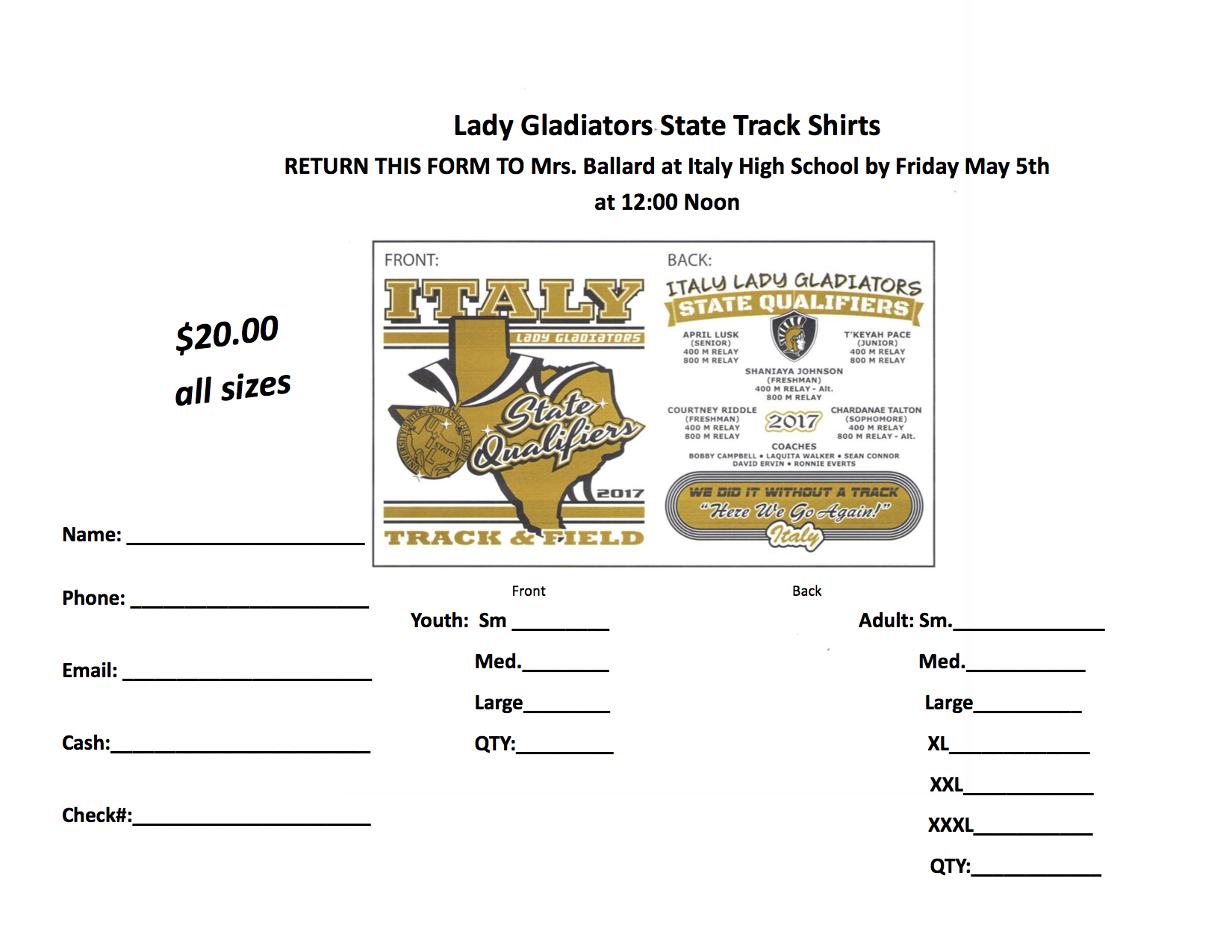 2017 Italy Track State Qualifier tshirt order form « previous story album next » Download original photo