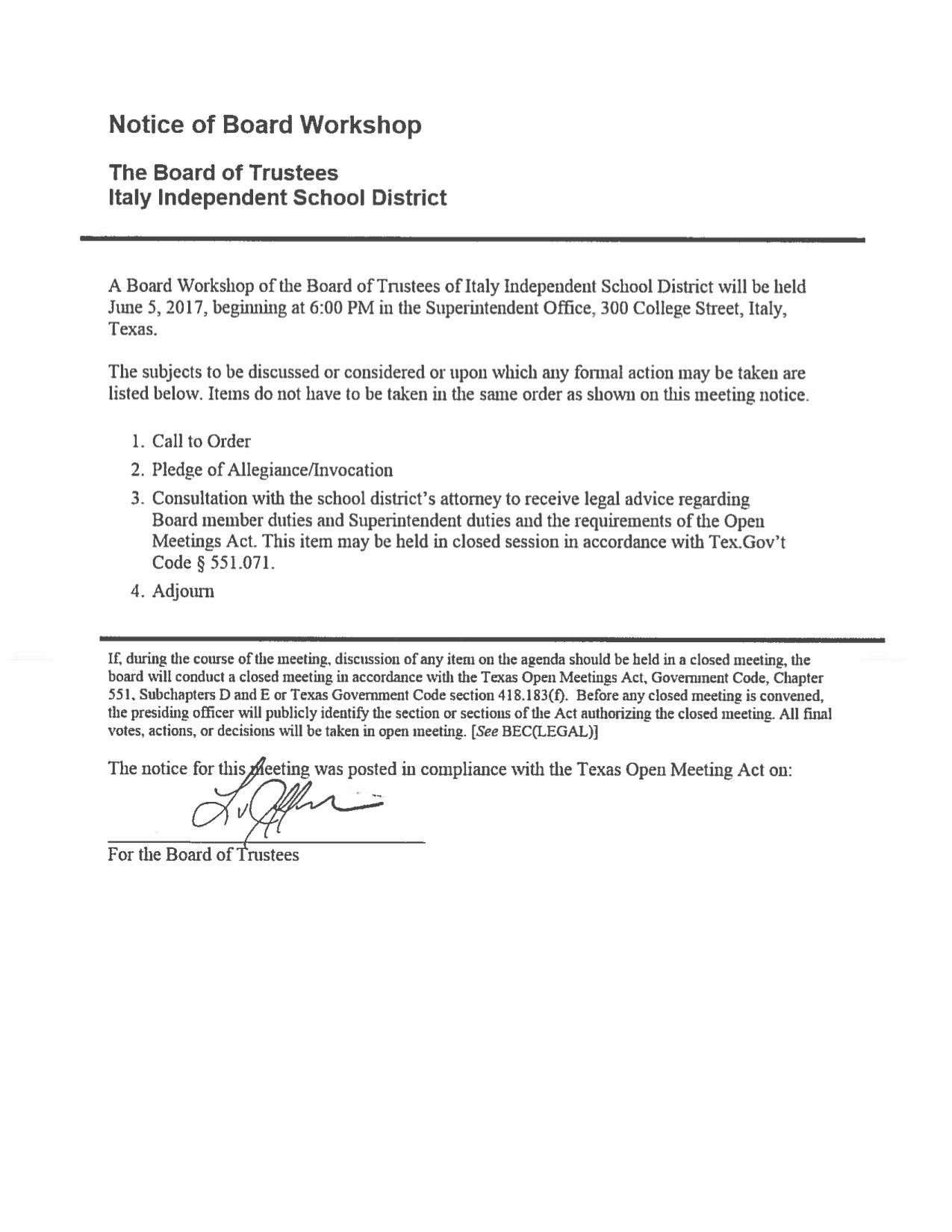 Agenda: Italy ISD School Board Workshop —Monday, June 5, 2017 « previous story album next » Download original photo