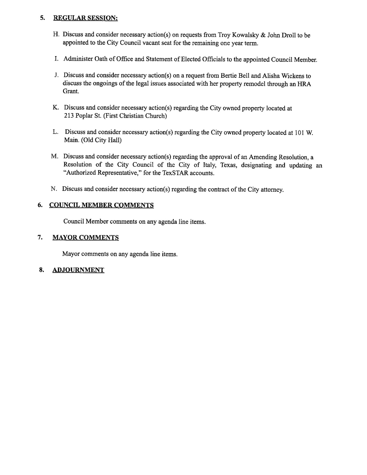 Agenda: Italy City Council Meeting – Monday, July 10, 2017 « previous story album next » Download original photo