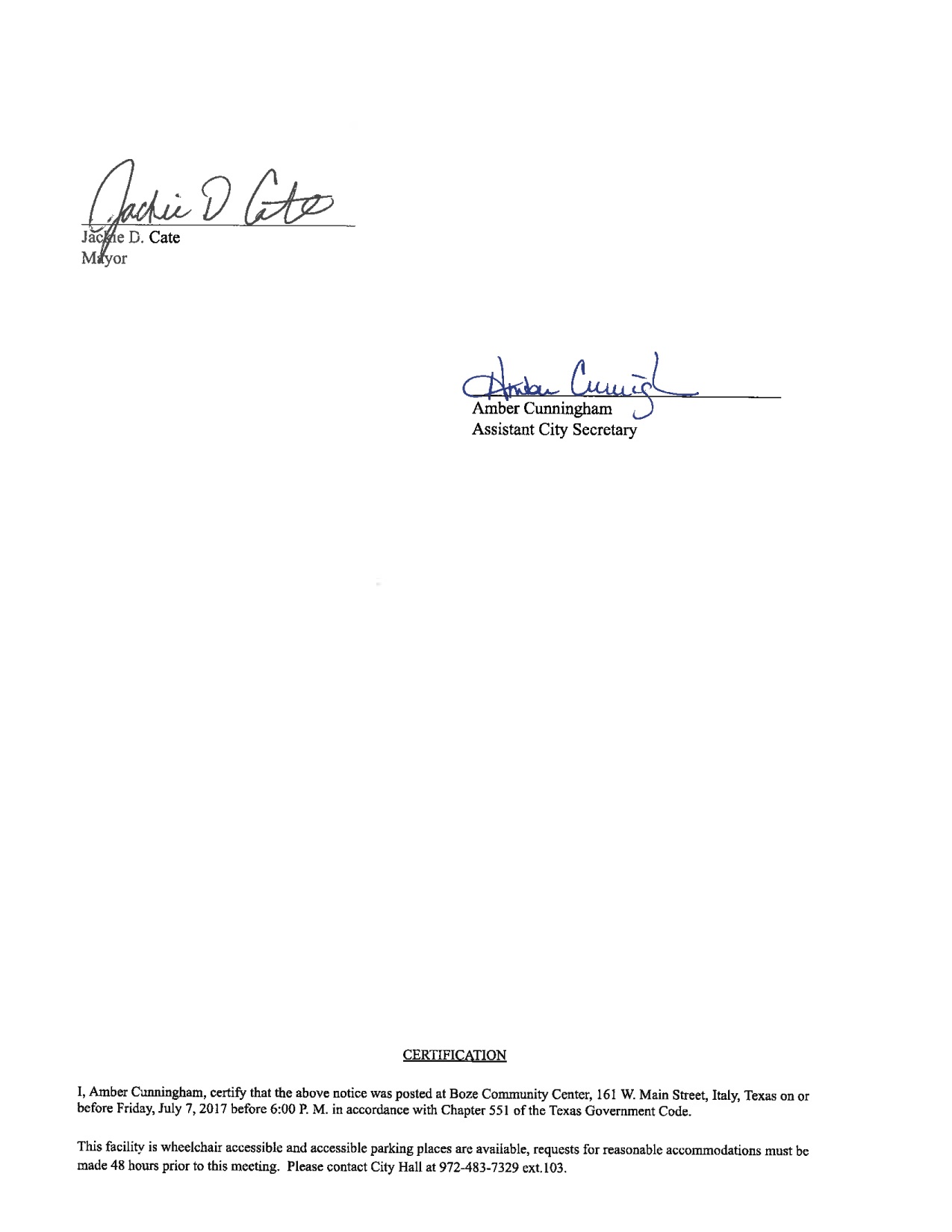 Agenda: Italy City Council Meeting – Monday, July 10, 2017