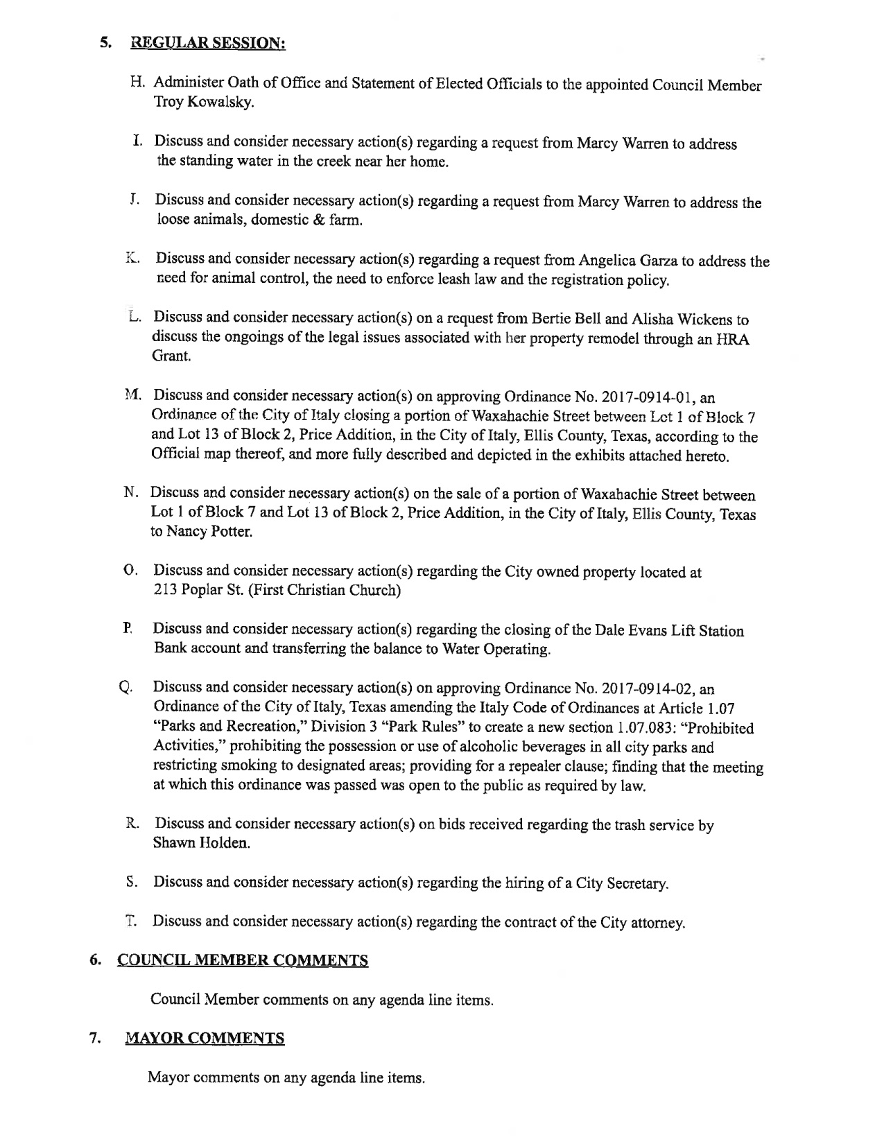 Agenda: Italy City Council Meeting – Monday,August 14, 2017 « previous story album next » Download original photo