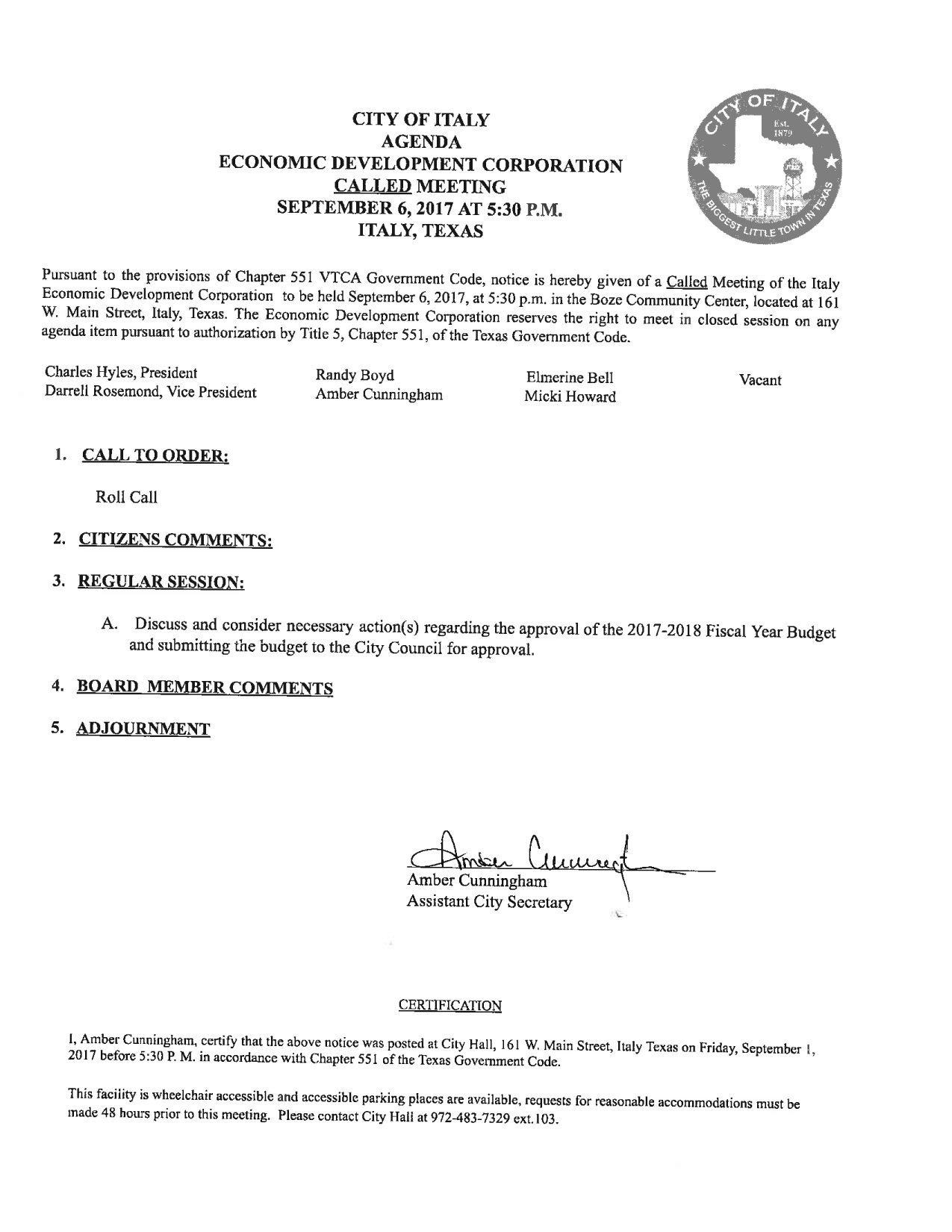 Agenda: Italy Economic Development Corporation Meeting — Wed., Sept. 6, 2017 « previous story album next » Download original photo