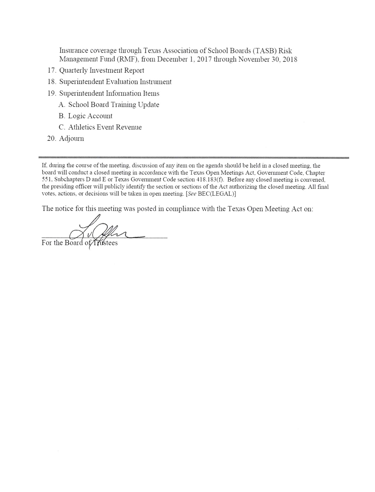 Agenda: Italy ISD School Board Meeting — Monday, October 16, 2017 « previous story album next » Download original photo