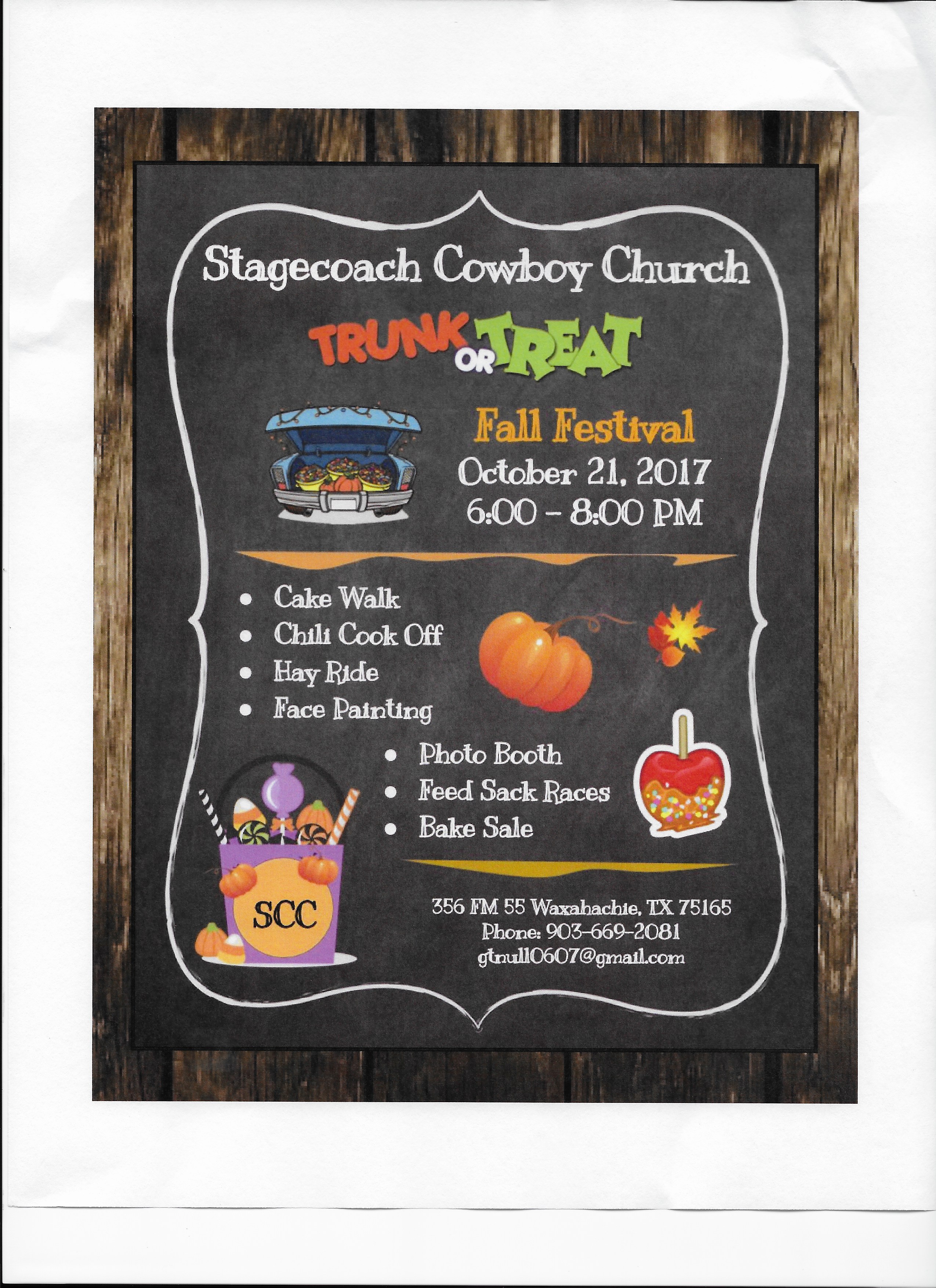 Stagecoach Cowboy Church to host Trunk or Treat Fall Festival « previous story album next » Download original photo