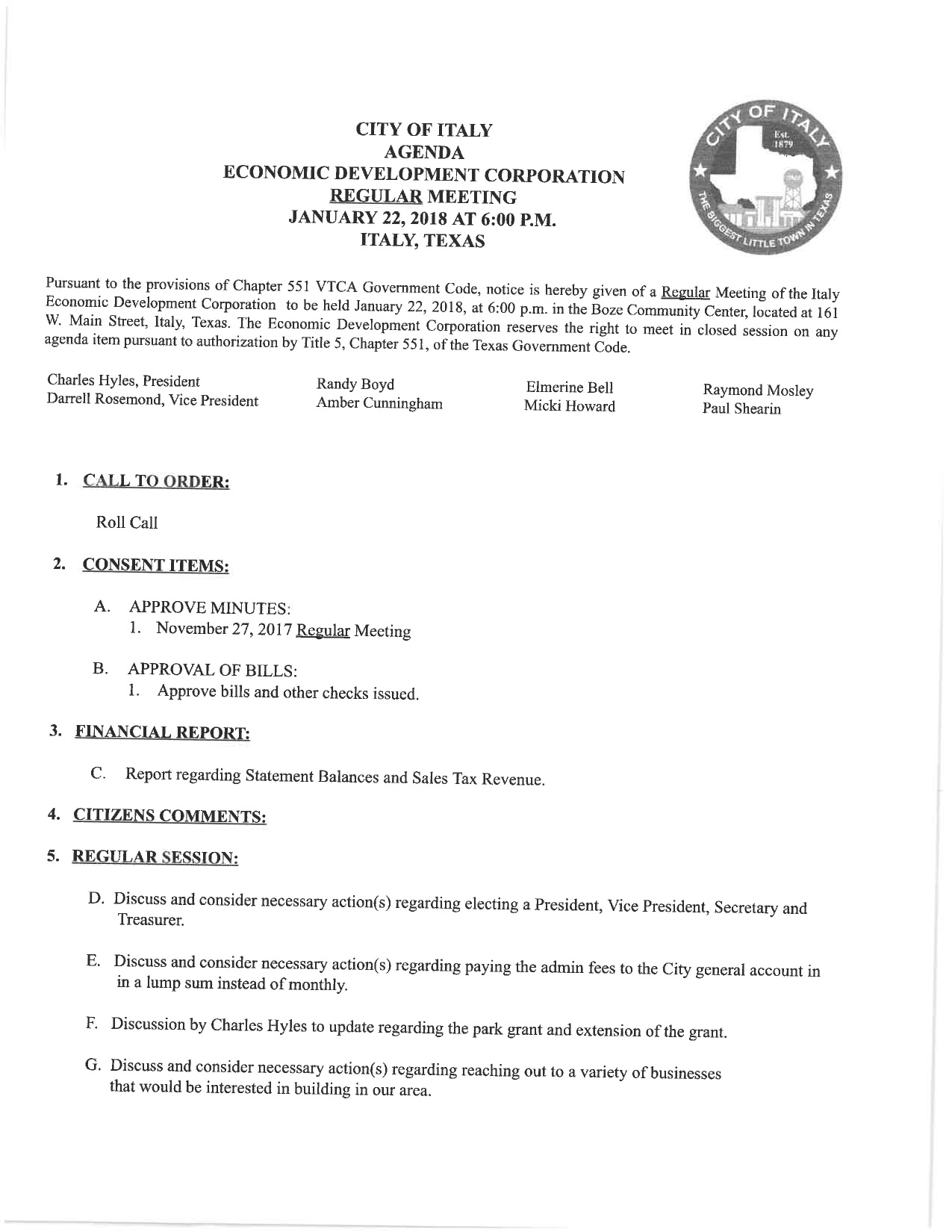 Agenda: Italy Economic Development Corporation — Monday, January 22, 2018 « previous story album next » Download original photo