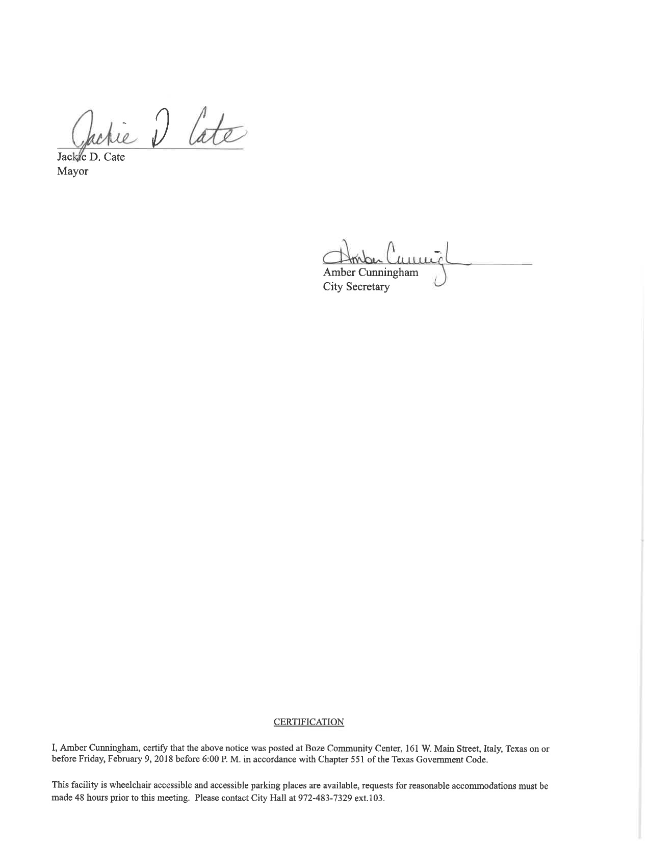 Agenda: Italy City Council Meeting — Monday, February 12, 2018 « previous story album next » Download original photo
