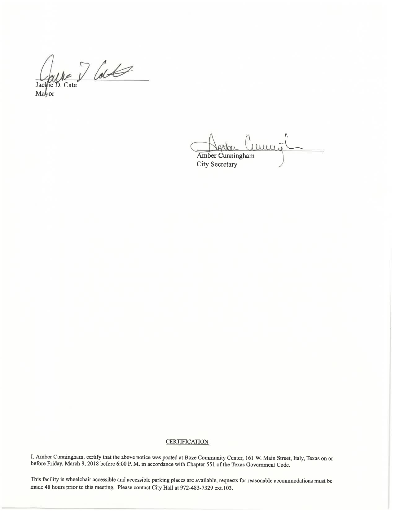 Agenda: Italy City Council Meeting — Monday, March 12, 2018 « previous story album next » Download original photo